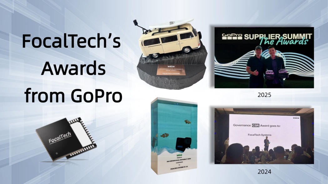 In recognition of these efforts, GoPro presented FocalTech with their prestigious CSR Award in both 2024 and 2025. This honor recognizes our outstanding contributions to green product development, the fulfillment of corporate social responsibility, and the joint construction of a sustainable supply chain.